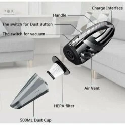 Aspirapolvere Per Auto Senza Fili 4 In 1 Da 120 W Con Ricarica USB Aspirapolvere Umido E Secco-nero
