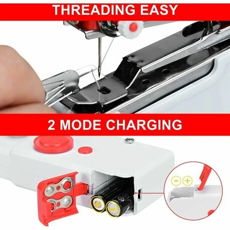 - 2 modalità di alimentazione: 4 batterie AA possono essere utilizzate in viaggio o per uso mobile (batterie non incluse); la macchina da cucire è inoltre dotata di un alimentatore USB DC 6V per uso domestico.
